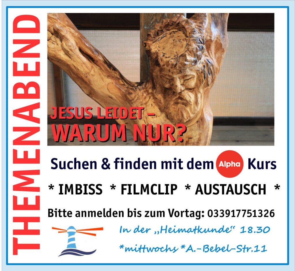 In unserer Reihe “Alphakurs” laden wir wieder zu einem Themenabend ein, der das Zentrum des Christentums berührt. Eine Frage, die sich jeder sicher schon einmal gestellt hat wird im Zentrum des Abends stehen. Und damit die Frage, was das mit unserer Gesellschaft und unserem Leben zu tun hat.